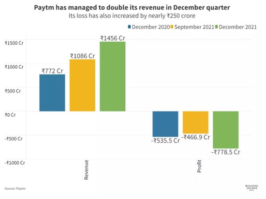 本周,“股神”巴菲特青睐的印度最大数字支付公司、被称为“印度版支付宝”的Paytm母公司One 97 Communications几乎每天都创下去年11月IPO上市以来的股价新低。这代表巴菲特在印度的首次、也是唯一一次投资正在巨亏50%, 甚至有媒体断言:“巴菲特在印度的投资处女秀完全失败了”。“印度支付宝”Paytm再创新低,去年11月上市后暴跌61%,巴菲特持仓价值腰斩 2018年9月,巴菲特旗下的伯克希尔哈撒韦通过投资子公司BH International Holdings向Paytm母公司投资3亿美元,收购2.6%的股份或1702万股,平均收购价格为每股1279卢比,当时对Paytm母公司估值为100亿美元,巴菲特在印度的首次投资也带动了当地金融科技热潮。 2021年11月18日Paytm在印度股市IPO上市时,伯克希尔哈撒韦趁机出售了140万股持股,售价为定在指导区间顶端的IPO发行价每股2150卢比,等于直接获利1600万美元,即收益68%。 尽管Paytm在IPO首日暴跌27%,巴菲特剩余持股(1562万股或2.41%的母公司股权)仍价值3.3亿美元,高于三年前的投资成本。Paytm曾创下印度股市去年IPO规模纪录。 但Paytm周五收跌近2%,股价不足834美元刷新上市以来最低,较IPO发行价暴跌逾61%,较上市几天后的52周新高1955卢比下跌57%。这也代表Paytm上市第一天起就处于“破发”状态。 这令伯克希尔所持股份的市值刚刚超过130亿卢比,约合1.47亿美元,较约3亿美元的初始投资规模直接腰斩,亏损逾50%。 持有Paytm母公司8.6%股份的创始人Vijay Shekhar Shams自公司上市以来净资产已缩水约15亿美元,也缩水不止50%。 媒体还称,贝莱德、软银、阿里巴巴和加拿大养老金计划投资委员会都是Paytm的股东,这些机构也大多损失惨重。去年11月上市后Paytm股价大跌时,还有知情人士透露,贝莱德和加拿大养老金计划投资委员会增持了更多股票,但并不清楚具体的增持数量。 去年四季度亏损扩大,盈利遥遥无期,巴菲特投资另一家巴西金融科技公司上市后也跌55% 分析称,Paytm股价上市后惨跌与散户投资者丧失信心不无关系,该公司2010年创立至今尚未盈利,而且短期内都没有盈利迹象。外加俄乌局势令避险情绪高涨、全球科技股因美联储等主要央行即将收紧政策而杀估值,以及疫情消退不利于“居家经济股”等因素,Paytm未来困难重重。 Paytm在2月5日发布的最新财报显示,截至去年12月底的公司2022财年第三季度,Paytm运营的综合收入同比增近89%至145.61亿卢比,但同期综合亏损为77.85亿卢比,较上年同期的亏损53.55亿卢比扩大了近46%。专家认为,在费用和管理费用增加的情况下,损失势必还会增加。 财报发布后,一直唱衰Paytm且对其股价具有较大影响力的麦格理研究(Macquarie Research)第三次下调目标价,从每股900卢比砍掉22%至700卢比,并将公司2022至2026财年的亏损预期提高了39%至101%。该投行认为Paytm商业模式缺乏焦点和方向,实现盈利是巨大挑战。 高盛对Paytm的观点整体看涨但较为矛盾,虽然将股票评级从“中性”上调至“买入”,但上周将目标价从每股1600卢比削减至1460卢比。 高盛认为,Paytm的收入具有强劲增长前景,股价大跌后具备有吸引力的风险回报。该投行将Paytm的收入预期提高了7%至10%,并称2024至2025财年可能达到调整后EBITDA盈亏平衡,由于资产负债表强劲,公司不太需要再次融资。 此外,摩根大通更为看好Paytm,1月研报将其评级为“增持”,设定了每股1850卢比目标价,显著高于高盛和麦格理等其他同行,理由是Paytm股价低于私人同类公司和全球竞争对手。 公开资料显示,巴菲特旗下的伯克希尔哈撒韦在2018年用6亿美元接连投资了两家金融科技公司,Paytm之外还有巴西数字支付公司StoneCo,均由投资经理Todd Combs促成。 不过,2018年10月在美国纳斯达克上市的StoneCo在2021年2月以后进入下行通道, 今日跌超3%,交投不足11美元,也较每股24美元的IPO发行价跌去55%,并创上市以来最低。 巴菲特曾称自己不擅长科技领域投资,并后悔没有投资Alphabet和亚马逊等科技巨头。投资Paytm事小,巴菲特加入的是一场决定印度零售业未来的战争。